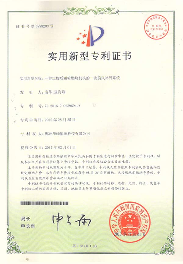 一種生物質顆粒燃燒機頭的一次旋風補氧系統